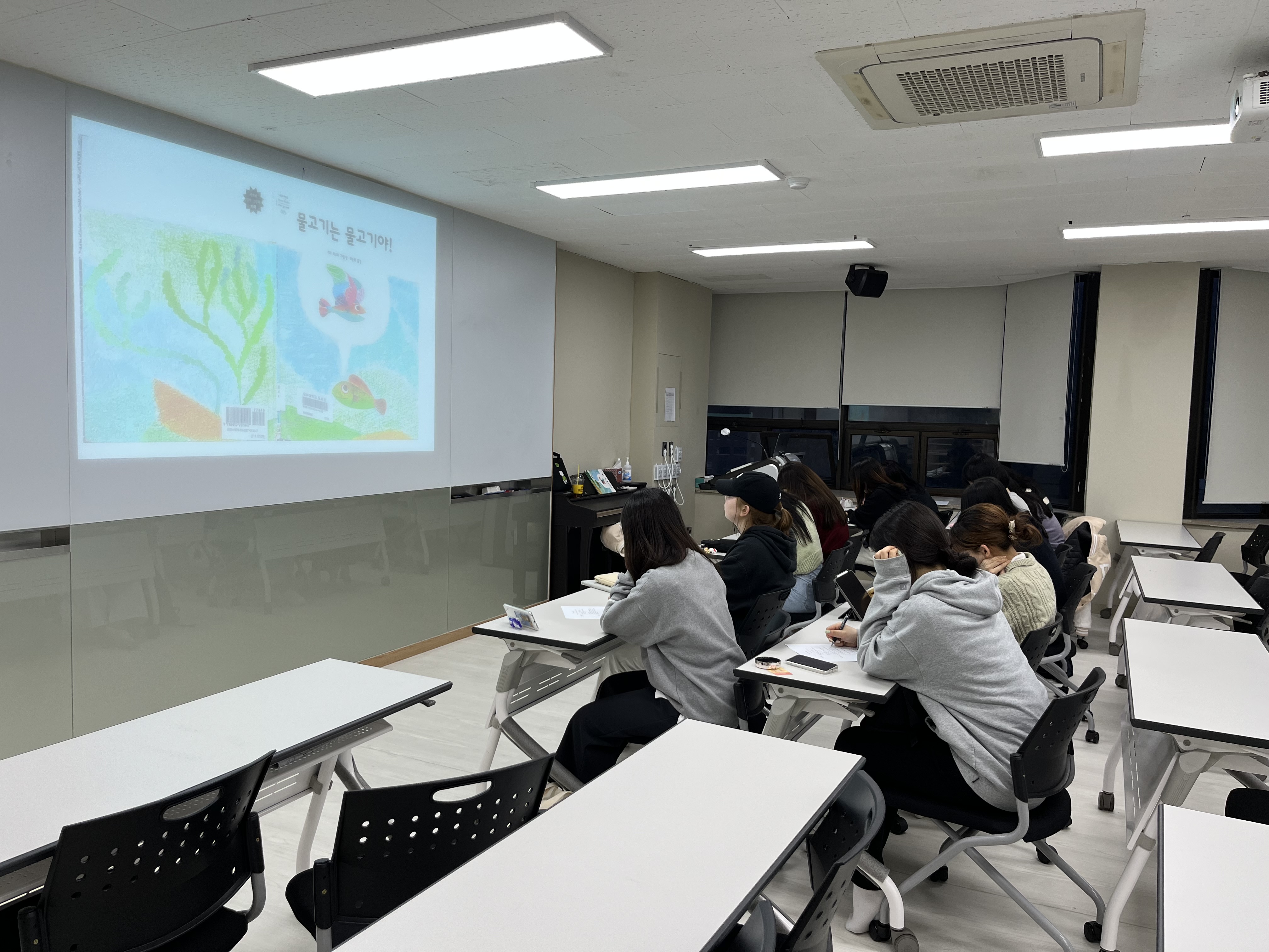 활동은 그림책 '물고기는 물고기야'를 다 같이 읽은 뒤 조별로 나누어 그림책을 읽기 전, 읽는 도중, 읽은 후로 나누어 활동지를 작성하면서 그림책을 깊이 들여다보는 시간을 가졌습니다.
